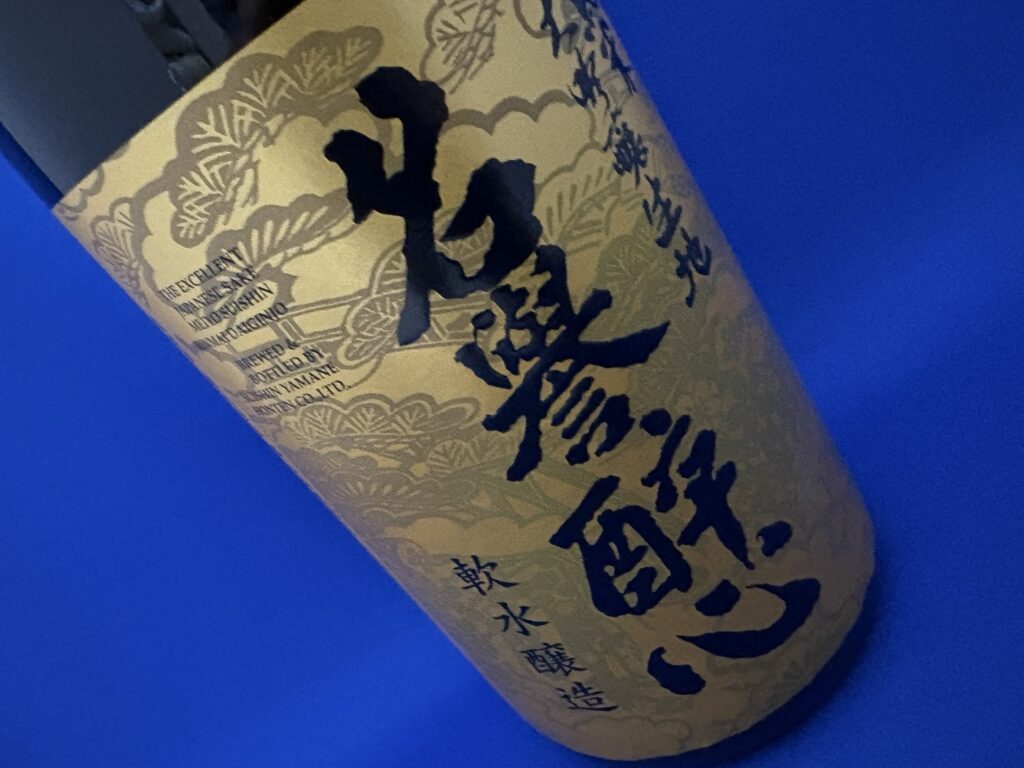 黄金色のラベルがまぶしい…。贈答や祝辞事に用いられることも多い逸品です。